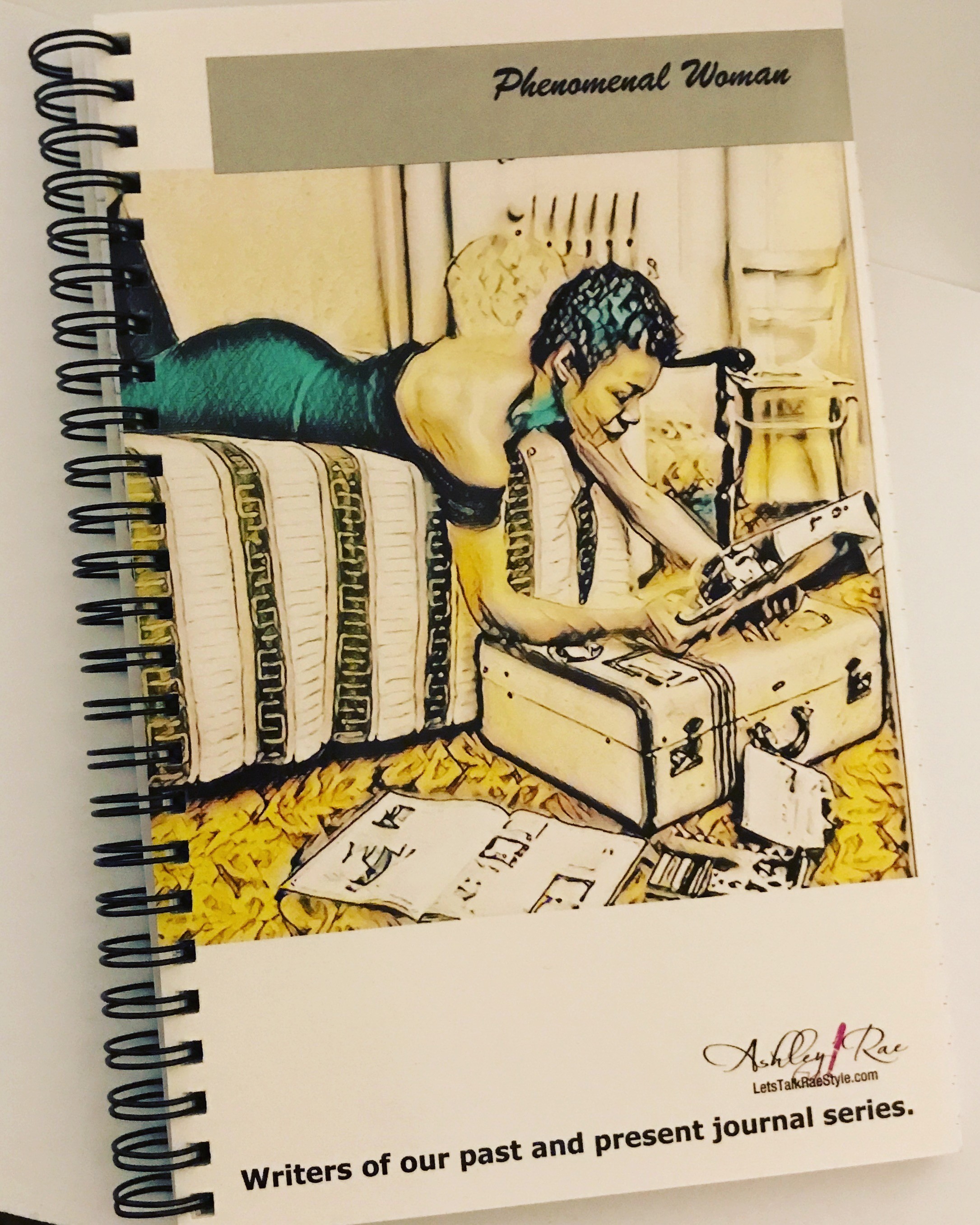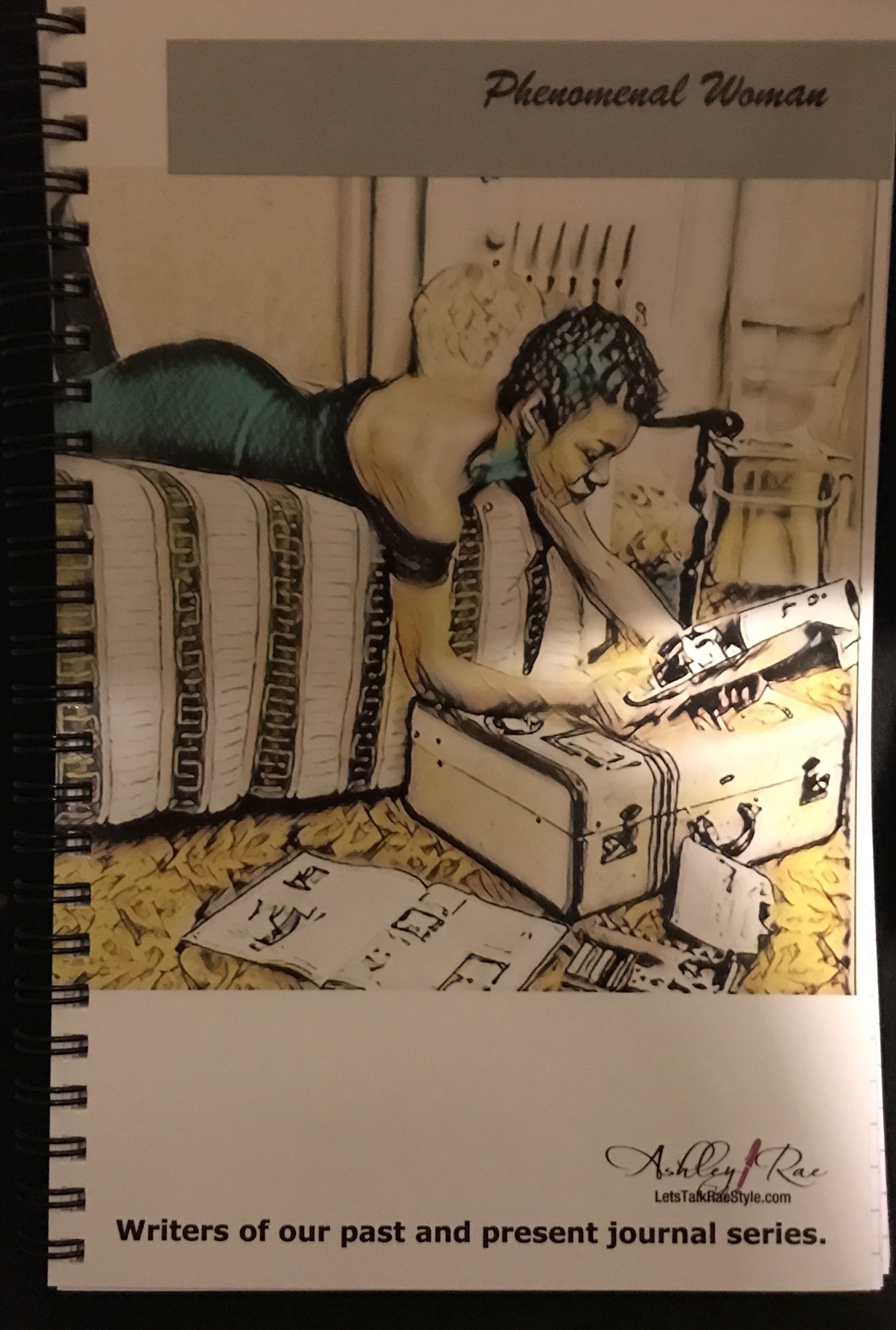 Journal cover hass an adaptation of a young version of Maya Angelou reading across her bed. This journal consist of 80 lined pages.